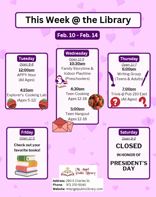 Creciendo Juntos is cancelled today (2/7/26) because the library only has one staff on duty. Apologies for the late notice!