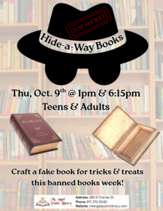 Create your own banned-book themed secret book box! All materials provided.