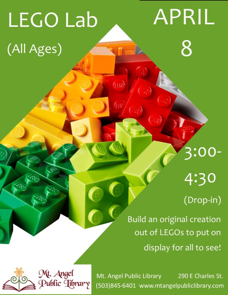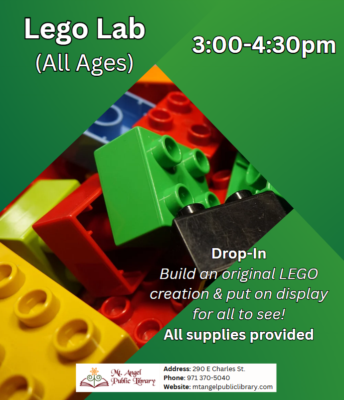 LEGO Lab: Various Fridays @ 3:00-4:30 (extended hours in the summer) drop-in (All ages):